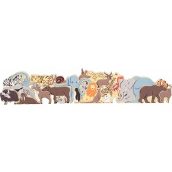 Mõistatus loomade maailmast! Selle erksavärvilise pusle eesmärk on kokku panna 26 armastusväärselt kujundatud puidust loomakujukest. Alpaka, flamingo, pingviin ja nende sõbrad on eriti paksud ja valmistatud siledast puidust, mistõttu on neid lihtne laste kätele haarata ning nendega saab fantaasiarohke mängu ajal puslest eraldi mängida. Loomadele on trükitud nende nimede esitäht saksa ja inglise keeles, mis aitab pusletükke õigesti järjestada. See on metsik nuputamisrõõm, mis toetab lapsi tähtede ja loomanimede õppimisel. ABC õppimine on tehtud lihtsaks! See puidust loomade pusle pakub võimalust õppida lõbusalt tundma loomi ja tähti, treenides samal ajal peenmotoorikat, keskendumisvõimet ja kannatlikkust. Sobib ideaalselt (eel)kooliealistele lastele!
