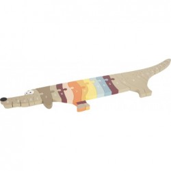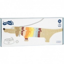 Kes saab aidata sellel armsal ABC taksikoeral kuju võtta? 26 eriti suurt ja paksu pusletükki teevad sellest pikast triibulise kampsuniga puslekoerast eriti lastesõbraliku puidust pusle. Kõik pusleelemendid on valmistatud siledast puidust ja neid on laste käte jaoks lihtne haarata. See on ideaalne puslemäng algajatele, mis ergutab kõiki meeli ja pakub kahekordset õppimisefekti, sest taks võtab õige kuju alles siis, kui tähestik on õiges järjekorras kokku pandud. Edu on siin ette programmeeritud! ABC pusle, mis sobib ideaalselt (eel)kooliealistele lastele. Kuhu iga tükk sobib? Kuidas see auku ideaalselt sobib? Selles puslemängus on ainult üks lahendus, mille saab leida, tehes seda tükkhaaval. See armas suur puidust pusle on oma moodsa välimusega armas pilkupüüdja ka lasteaia kaunistuseks.