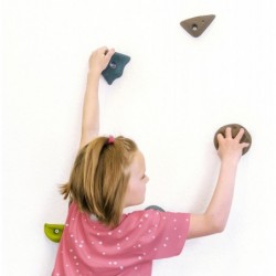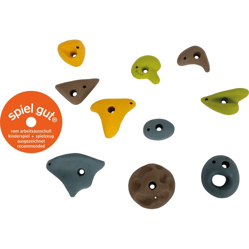 Väikestele ronimisproffidele! Nende 10 erineva kujuga tugeva plastikust ronimiskäepidemega saate konta seinale ainulaadseid ronimisastmeid. Ronimiskivid on tänu kahepunktilisele kinnitussüsteemile kindlustatud äkilise pöörde eest. Need sobivad suurepäraselt koos "Adventure" siseronimisseinaga. Sealhulgas paigaldusmaterjalid. Tänu nende suurusele ja struktureeritud pinnale on need ronimiskivid lastele eriti kergesti haaratavad. Mänguliselt ronimine soodustab jõu, tasakaalu, julguse ja vastupidavuse arengut. Pluss: saate konta seintele ja põrandatele tervikliku võimlemismaailma koos "Adventure" sarja vastastikku ühilduvate treeningmänguasjadega.