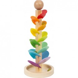 Vaadake ja kuulake – see marmorjooks on tõeline helielamus! Kui klaasmarmor on punasesse puidust kuuli sisestatud, hakkab see liikuma kõrgematest toonidest alumise sektsiooni madalamate toonide poole. Lisaks: värsked üksteist täiendavad vikerkaarevärvid muudavad selle akustilise marmori lasteaias dekoratiivseks pilgupüüdjaks! Lastele meeldib katsetada! Kasutades kõikvõimalikke erinevaid marmoreid, saate selle elegantse helimarmorijooksuga teha põnevaid müraeksperimente: näiteks kuidas see kõlab koos hunniku marmoriga korraga? Kuidas marmoride vaheline ruum heliefekti muudab? Siin on palju kauakestvat meelelahutust garanteeritud!