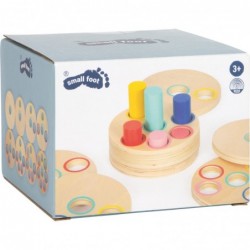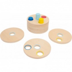 See on nagu pusle, aga lihtsalt huvitavam. Logisteck vaimustub kohe ja treenib peenmotoorikat! Eesmärk on panna kõik värviliste aukudega taldrikud sobivate värviliste sammaste külge. Seda on aga lihtsam öelda kui teha...! Mõelge täpselt, vaadake täpselt ja proovige ühendada sobivad kettad – suurepärane plug-in mäng, mis treenib motoorseid oskusi ja käe-silma koordinatsiooni! 8 stabiilset ketast (1 cm paksused), mis on valmistatud peenelt viimistletud vineerist, mis asetatakse värvilistele ribadele. Kuna latid on erineva pikkusega ja iga ketta ava on alati väiksem kui eelmisel, siis on selle mängu lahendamiseks ainult üks võimalus!