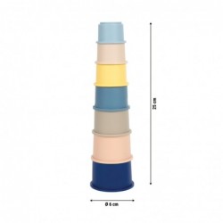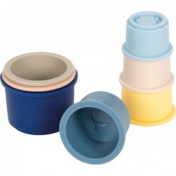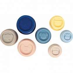 Virnastamine, sorteerimine, mängimine – toas ja õues! Need 7 pehmest, BPA-vabast silikoonist valmistatud armastusväärse disainiga virnastamistopsi toovad mängulusti lastetuppa, vanni või liivakasti. Armsate loomamotiividega iga tassi ülaosas kutsuvad 7 erinevas suuruses tassi väikelapsi treenima oma peenmotoorikat, tegema esimesi virnastamiskatseid ja avastama maailma kõigi meeltega. Kvaliteetsest toidukindlast silikoonist valmistatud tassid on eriti pehmed, painduvad ja ohutud, ilma teravate servade ja kõvade nurkadeta. Need on BPA-vabad, lõhnatud ja kahjulike ainete vabad – sobivad ideaalselt kõige väiksematele. Olgu siis lasteaias virnastamine, veemängulauas segaduse tegemine, liivakastis kaevamine või vannis mängimine: virnastatavad tassid lõikavad igal pool ilusa kuju ja neid on lihtne puhastada. Silikoonist virnastatavad tassid on mitmekülgne mänguasi beebidele ja väikelastele, mis stimuleerib nii motoorset arengut kui ka meeli. Tänu nende ruumisäästlikule disainile saab tassid kompaktselt pesa panna ja pärast mänguaega hõlpsasti ära panna. Pehmed värvid ja pehme tunne muudavad virnastamismängu mitte ainult motoorseks, vaid ka sensoorseks kogemuseks, mis hoiab lapsed pikka aega tegevuses ning aitab neil mängu kaudu arendada visadust ja keskendumisvõimet.