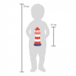 Merendusliku välimusega virnastamine ja kuju sobitamine noortele, ambitsioonikatele majakaoperaatoritele! See tugevast puidust virnastamistorn motiveerib isegi kõige väiksemaid lapsi majaka seitset erinevat virnastamiselementi suuruse järgi sorteerima ja üksteise peale virna laduma. Virnastatuna moodustavad nad suurepärase virnastamistuletorni, treenides samal ajal nende motoorseid oskusi, käe-silma koordinatsiooni ning värvide ja suuruste mõistmist. Painduv varras tagab täiendava turvalisuse. See tugevast puidust valmistatud lastesõbralik motoorsete tegevuste klassika tagab kauakestva mängulusti. Puit on katsudes sile ja meeldivate haptikatega. See virnastatav tuletorn jätab suurepärase mulje lasteaia kaunistuseks ja sobib suurepäraselt teiste sarnase kujundusega puidust mänguasjadega: Whale Baby Walker, Big Ocean Music Box, Big Ocean Motor Activity Cube ja Big Ocean Mobile.