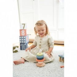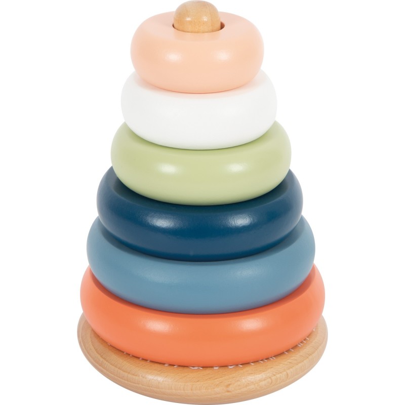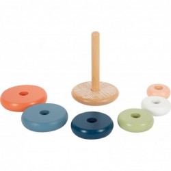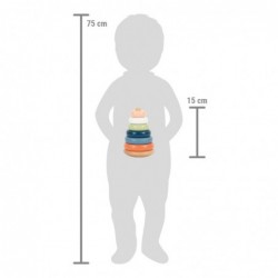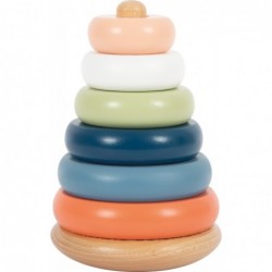 Virnastamine ja vormistav lõbu arktilise hõnguga! See FSC 100% sertifitseeritud puidust virnastamistorn motiveerib ka kõige väiksemaid lapsi kuut erinevat värvi rõngast suuruse järgi sorteerima ja üksteise peale virna laduma. See tegevus treenib motoorseid oskusi ja käe-silma koordinatsiooni ning annab arusaamise värvidest ja suurustest. Ümar põhi laseb virnastamistornil edasi-tagasi õõtsuda, seades laste osavuse lõbusalt proovile. Liigutatav tihvt lisab täiendavat turvalisust. See lastesõbralik klassikaline tugevast puidust motoorne mänguasi on kujundatud moodsate, kuid õrnade värvidega ning tagab kauakestva mängulusti. Puit on katsudes sile ja meeldiva haptilise kogemusega. Väikestel lastel ei hakka sellega sugugi igav!