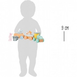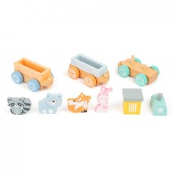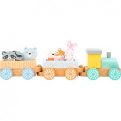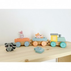 Toot toot, siit tuleb rong! Selle pastellvärvilise rongi pardal on igasugust mängulusti! Kaks rongivagunit saab hõlpsa sisestusühenduse abil kokku ühendada. Väikest vedurit saab tõmmata kahe sissepandava ehitusplokiga. Rongivagunid pakuvad ruumi neljale armastavalt maalitud loomareisijale. Ja kõik tahavad sõita: rebane, karv ja nende sõbrad ootavad põnevusega reisi läbi lasteaia!