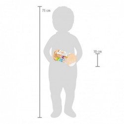 Käed mängivad – kõrvad kuulevad ja tunnevad ära – silmad vaatavad imestunult. Värvilised puidust helmed kihutavad mööda kolme omavahel põimunud helmeste rullnokki. Raputamisel liiguvad kokku nööritud puitelemendid rütmi ja teevad hääli! See motoorsete oskuste mänguasi kuulub igasse lastetuppa!