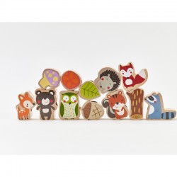 - Komplekt koosneb nöörist ja 12 helmest, mis kujutavad erinevaid loomi ja metsataimi, sealhulgas: siil, öökull, käbi, leht, seened.