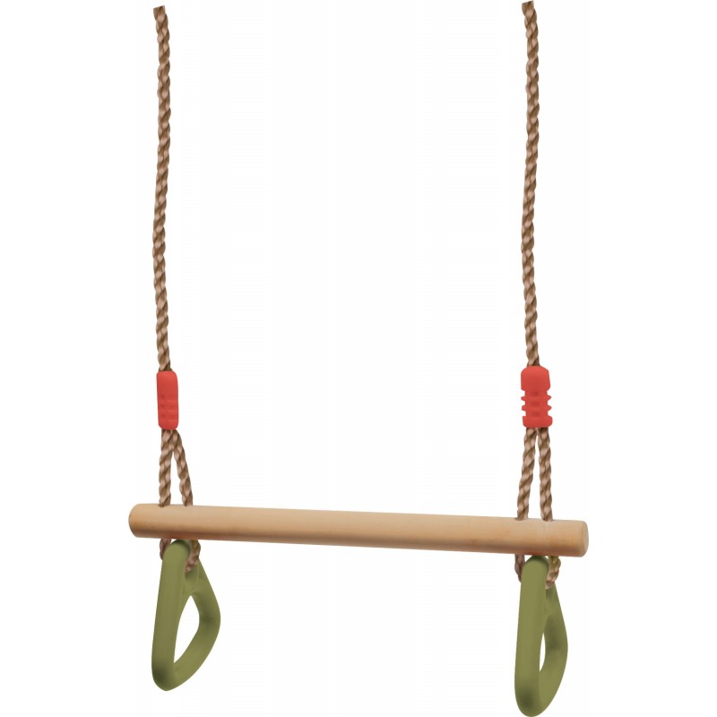 Väikesed akrobaadid saavad treenida oma tasakaalu, jõudu ja jõudu! Puidust kangi (suurus ca 45 x 3,5 cm) saab kasutada istumis- või võimlemiskangina. (suurus ca 15 x 14 cm) hoia väikestest kätest treenimise ajal tugevasti kinni. Tugeva sünteetilise köie saab kindlalt kinnitada metallrõngastega.