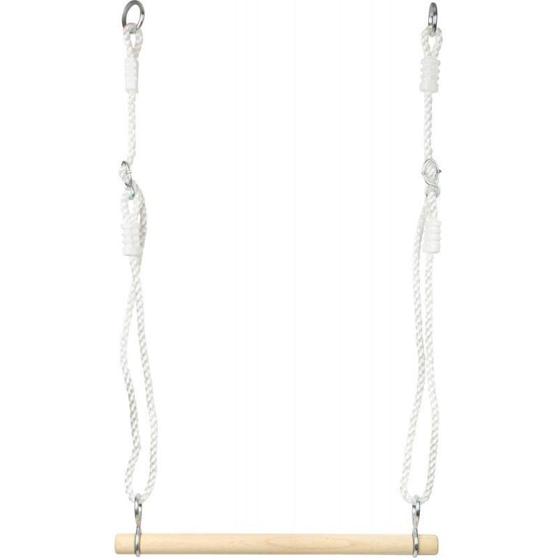Kõrge latt või kiik? Mõlemad! Sellel tugeval puidust trapetsil saavad noored akrobaadid end ümbritsevat maailma vaadeldes kas istudes või meele järgi rippudes kiikuda, õõtsuda ja õõtsuda. Tulevased tsirkuseartistid saavad harjutada oma suure show jaoks! Kogu selle aja jooksul treenitakse kehakontrolli, jõudu ja agilityt. Ainult parim akrobaatika! Kaasas stabiilsed, reguleeritava pikkusega köied ja metallrõngad riputamiseks ja paigaldamiseks.