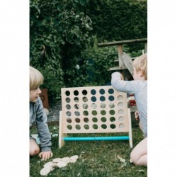 See klassikaline "Neli järjest" mäng on valmistatud puidust. Selle XXL-formaat pakub lastele ja täiskasvanutele palju lõbu. Siin tuleb loogika ja keskendumisega proovida panna neli sama värvi tükki ritta. Suuremaid tükke saab hõlpsasti haarata ja need pakuvad kõigile mängijatele paremat ülevaadet skoorist. Ideaalne ka õues mängimiseks! Kes on võitja tänu värvilistele plaatidele ja nutikatele kombinatsioonidele?