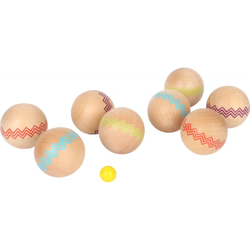 Siin on vaja täpsust! Selle tuntud ja populaarse mänguga tuleb suuremad pallid väiksemale pallile võimalikult lähedale viia. See petangikomplekt koosneb ühest väikesest kollasest kuulist ja 8 suurest FSC� 100% sertifitseeritud puidust pallist, mis on kaunistatud värviliste siksakiliste joontega. Suurepärane mäng, mis on lõbus nii lastele kui ka täiskasvanutele. See nõuab ka keskendumist ja osavust ning seda saab mängida õues ilma muude osade või tööriistadeta. Seda välimängu saab mängida meeskondades ja suuremates gruppides. Nii et alustame!