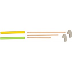 Minigolf kõigile! See FSC� 100% sertifitseeritud puidust moodsa disainiga minigolfikomplekt on mitmekülgne ja klassikaline mäng, mis sobib tänu kolme erineva pikkusega golfikeppidele võrdselt igas suuruses golfimängijatele. See komplekt sisaldab klassikalisi minigolfi elemente, nagu kaldteed, kiiged, tunnelid ja takistused, mille abil saate konta oma individuaalseid radasid vastavalt mängija vanusele ja võimetele. Pehmed pallid annavad täiendava turvakihi. Kaasas kott hoiustamiseks ja transportimiseks. Kes suudab palli auku lüüa kõige vähemate löökidega? Lisaks mängijate oskustele ja keskendumisvõimele, nõuab see kaasaegne minigolfimäng ka täpsust ja järjepidevust ning on tõeline mängulusti aastaringselt nii sise- kui ka välimänguna. See on ideaalne mäng kogu perele!