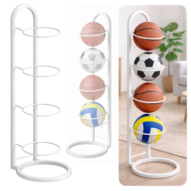 Stendil on neli astet, mis on mõeldud korv-, võrk- või jalgpallipallide jaoks. Iga tasand hoiab palli kindlalt kinni, takistades selle liikumist. See on ideaalne lahendus füüsiliselt aktiivsetele inimestele ja lastega peredele, kes soovivad oma ruumi korrastada.