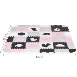 Matt koosneb 36 vastupidavast EVA-materjalist tükist, mis sobivad kokku nagu pusle, luues pehme pinna mõõtmetega 151 x 151 cm ja paksusega 0,9 cm. See sobib ideaalselt mängimiseks, kõndima õppimiseks ja isegi roomamiseks. Selle spetsiaalne libisemiskindel tekstuur muudab selle lastele ohutuks. Komplekt sisaldab 16 ruutu ja 20 lisatükki "hammastega", mida saab igal viisil kombineerida. Lisaribade abil saab mati sulgeda, et luua "kuiv bassein". Materjali paksus pehmendab tõhusalt kukkumisi ja kaitseb külma eest.
