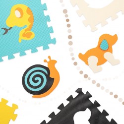 Eemaldatavad elemendid sobivad suurepäraselt kujundite äratundmise õppimiseks. Lisaks stimuleerivad kontrastsed värvid ja konarlik struktuur väikelapse mustri- ja puudutustunnet.
