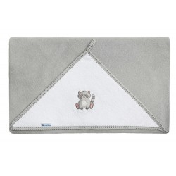 Kate on valmistatud termofrotee puuvillast, millele on lisatud väike polüester. See on pehme, meeldiv puudutada ja kergesti triigitav. Kaanel on suur suurus 100x100 cm ja avar kapuuts võluva tikandiga.