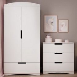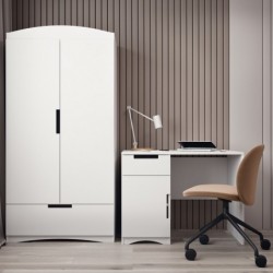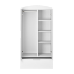 Riidekapp on valmistatud kvaliteetsest 18mm paksusest lamineeritud mööbliplaadist. Garderoobi esiküljed on 3 korda ökoloogiliste värvidega lakitud mdf-plaadist. Sellel on 2 mahukat sahtlit kuullaagrite liugustel. Seest on riidekapp jagatud kaheks osaks, millest ühes on riba riidepuu jaoks ja teises on 4 riiulit (40 x 60 x 30 cm)