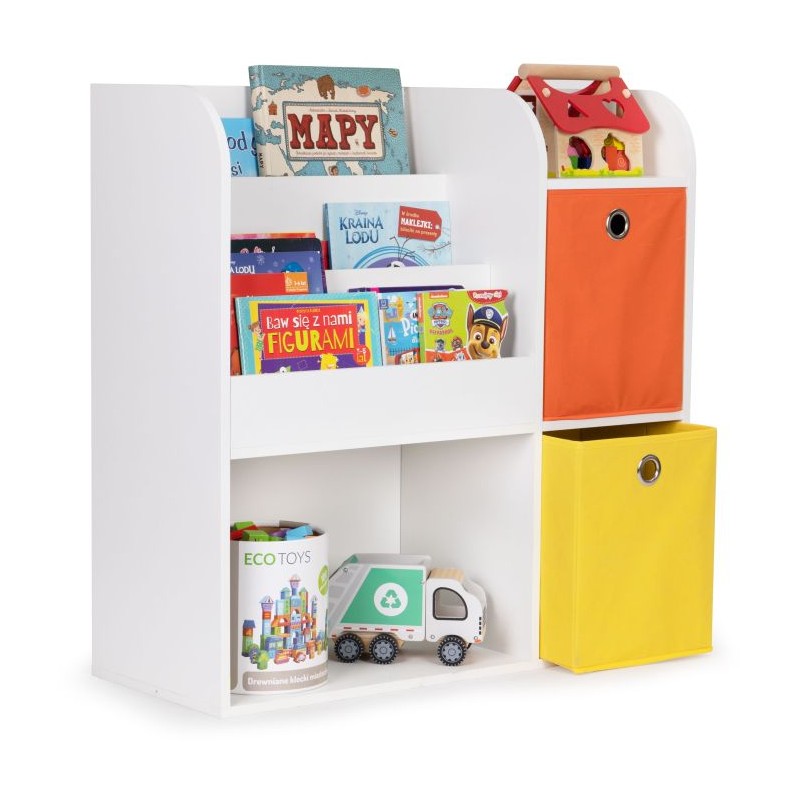 Raamaturiiul, mis on valmistatud vastupidavast puitlaastplaadist ja viimistletud vastupidava spooniga. Sellel on funktsionaalsed riiulid ja värvilised tekstiilist mahutid mänguasjade jaoks. See sobib ideaalselt igat tüüpi interjööri.