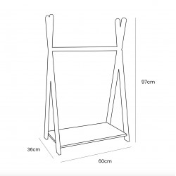 MeowBaby tipi riidestange on stiilne laste riidepuu, mis ühendab endas funktsionaalsuse, disaini ja iseseisvuse arendamise. Selle tipi-st inspireeritud disain lisab lapse tuppa mängulise elemendi ja aitab samal ajal igapäevast organiseerimist.