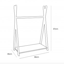 MeowBaby tipi riidestange on stiilne laste riidepuu, mis ühendab endas funktsionaalsuse, disaini ja iseseisvuse arendamise. Selle tipi-st inspireeritud disain lisab lapse tuppa mängulise elemendi ja aitab samal ajal igapäevast organiseerimist.