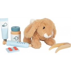 Väike jänes, suur vastutus! Selle armastavalt kujundatud plüüsist jänesega loomaarstikotiga saavad lapsed sukelduda loomaarsti rolli ja hoolitseda oma patsientide eest. Alates temperatuuri mõõtmisest kuni röntgenipiltide ja kirburavini muudab see mitmekülgne mängukomplekt loomaarstivisiitide, loomade eest hoolitsemise ja tervishoiuga seotud rollimängud mitte ainult realistlikuks, vaid ka harivaks ja südantsoojendavaks! Lai valik tarvikuid pakub kõike, mida noored loomaarstid vajavad: stetoskoop, termomeeter, otoskoop, süstal, sidemed, kaitsekaelarihm ja isegi tahvelarvuti röntgenpiltide vaatamiseks, sealhulgas neli röntgenpilti (koer, kass, jänes, hobune). Röntgeniplaatide tagaküljel on ka tervisekontrolli vorm. Komplekti täiendavad puugipintsetid, pintsetid, ravimid ja vaktsineerimiskaart koos vastuvõtukaardi ja haigusloo vormiga, samas kui erinevate koeratõugudega A5-formaadis plakati saab stiilselt „loomaarstipraktikasse“ riputada. Eriti praktiline: kott ei ole mitte ainult jänese transpordikast, vaid ka kasulik arstikott, mis hoiab asjad korras ja toob liikuvuse mängu. Komplektis olevat markerit saab kasutada tervisekontrolli ja patsiendikaartidele kirjutamiseks, mis soodustab ka keelelist arengut ja loomade tervise mõistmist. Realistlik varustus soodustab loomingulisi mängustsenaariume ning tugevdab mänguliselt empaatiat, vastutustunnet ja peenmotoorikat.