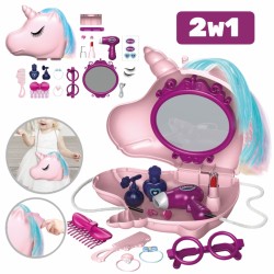 Suur, eraldiseisev valge tualettlaud ja aksessuaarid kaunis Viga ükssarviku kotis on unistuste komplekt iga tüdruku tuppa. Tualettlaual on väljatõmmatav sahtel, kus väike printsess saab oma aardeid hoida. Peegli all on sahtlid käepäraste aksessuaaride jaoks. Komplekti kuulub ka tualettlaua tool. Ükssarviku kott sisaldab kõiki olulisi aksessuaare, mis sobivad ideaalselt ilusalongi.