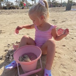 Kas lähete lapsega reisile ja teil pole õrna aimugi, kuidas mänguasju ühte kohvrisse mahutada? Kas lähete päikesepaistelisse randa ja olete tüdinud rasketest plastmänguasjadest? Meil on Sulle geniaalne lahendus ... Silikoonsõel, tänu millele sõelub laps välja soovimatud suuremad liivaelemendid. Sõel sobib ideaalselt Scrunchi ämbrisse. See on valmistatud täielikult silikoonist, tänu millele on see kerge, vastupidav ja kokku keeratav, et võtta kotis vähem ruumi. Seda on lihtne kasutada ja see sobib igas vanuses lastele.