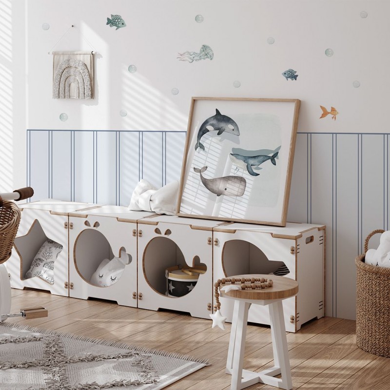 Iseliimuv seinapaneelide imitatsiooniga tapeet. See sobib ideaalselt teiste seinakaunistuste, näiteks kleebiste, plakatite ja isegi tapeediga. Paneele on saadaval ka teistes värvides.