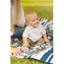 Komplekt koosneb padjast (36 × 28 cm) ja tekist (56 × 76 cm). Tänu oma mõõtmetele sobib komplekt ideaalselt lapsevankrisse, võrevoodisse või pehmeks matiks beebile. Padi on antiallergilise täidisega, mis tagab hea isolatsiooni külma eest. Padi ise võib olla ka kaisuloom. Komplekt on valmistatud 100% puuvillast – ühel küljel on pealismuster ja teisel küljel on pehme vahvlistruktuuriga puuvill, mis muudab kogu komplekti erakordseks.