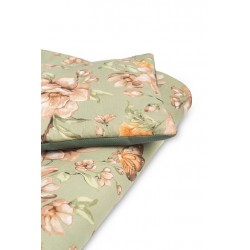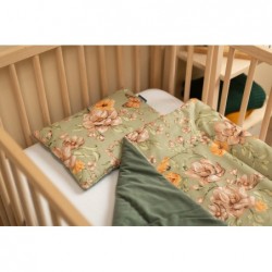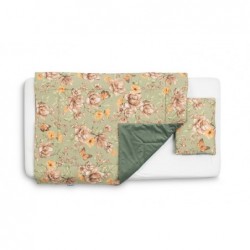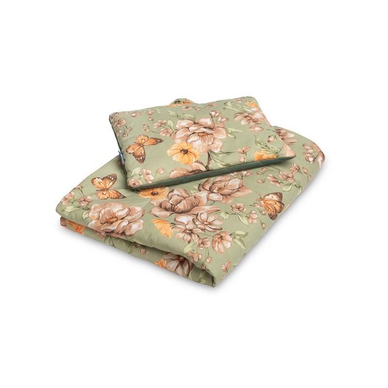 Voodikomplekt on ühelt poolt valmistatud kvaliteetsest värvilisest puuvillast ja teiselt poolt meeldivast sametkangast. See koosneb lamedast padjast ja allergiavastase täidisega tekist. Pehme kangas mähib meeldivalt iga beebi enda ümber.
