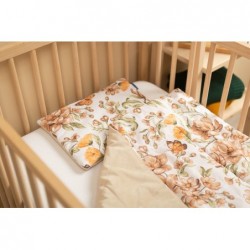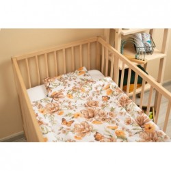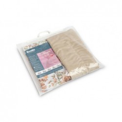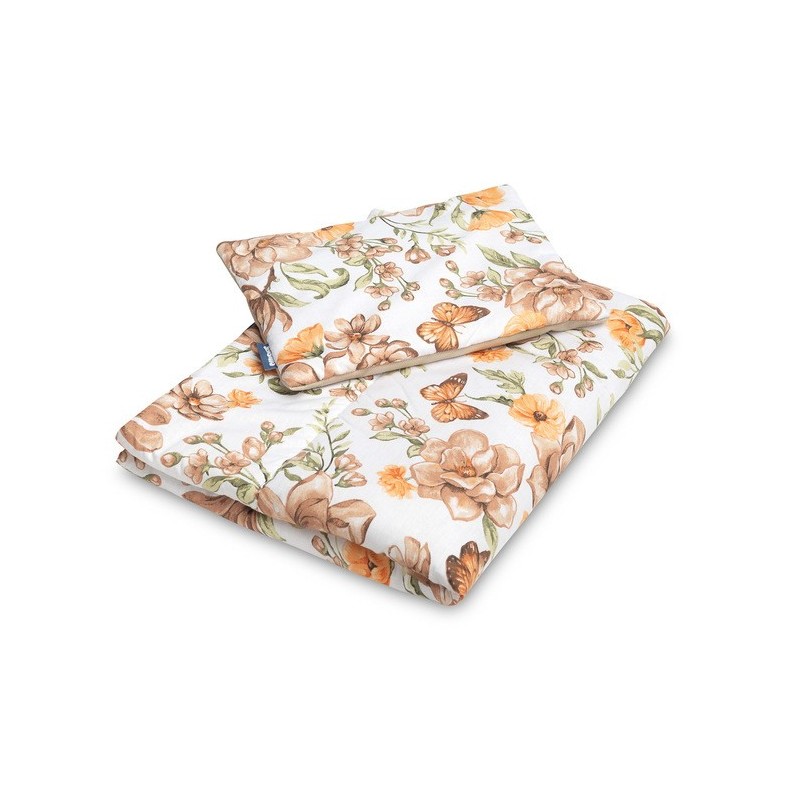 Voodikomplekt on ühelt poolt valmistatud kvaliteetsest värvilisest puuvillast ja teiselt poolt meeldivast sametkangast. See koosneb lamedast padjast ja allergiavastase täidisega tekist. Pehme kangas mähib meeldivalt iga beebi enda ümber.