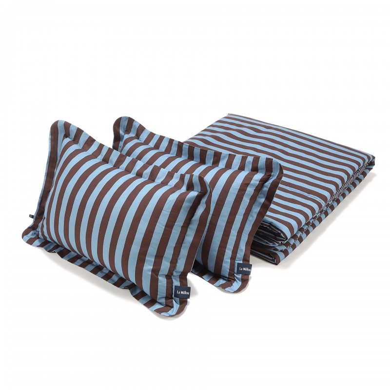Täidisega voodipesukomplekt, valmistatud kõrgeima kvaliteediga puuvillast. Komplekti kuulub pehme tekk ja padi. Täidis on allergiavastane polüesterkiud, mis tagab õige temperatuuri, hapniku juurdepääsu ja niiskuse eemaldamise ning selle tulemusena suurepärase unemugavuse. Edendame kasutusvalmis, st sisseõmmeldud täidisega voodipesu moodi. Praegu domineerivad turul padjapüürid ning eraldi ostetavad tekid ja padjad. Soovime seda muuta ja julgustada teid pesema iga kord kogu asja, mitte ainult pealmist, saavutades nii 100% puhtuse, mis on allergikute puhul ülimalt oluline. La Millou voodipesu on masinpestav ilma kvaliteedis järeleandmisi tegemata. Voodikomplektid on saadaval paljudes suurustes. XL voodipesu töötab vanuses 6 kuni 106 aastat :-). XL voodipesukomplekti padi ja XXL voodipesu kahest padjast koosnev komplekt on paksema, elastse täidisega ja elegantse volangiga.
