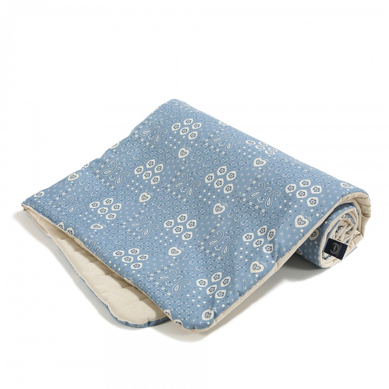 Kahepoolne tekk lasteaeda, mis sobib hästi ka tekiks või mõnusaks katteks lasteaia uinakuajal.  Teki üks pool on valmistatud kõrgeima kvaliteediga puuvillast ühes meie neljast mustrist ja teine ​​pool elegantsest Velvetist. Tekk on täidetud hüpoallergeense silikoonfliisiga, mis muudab selle ülikergeks, pakkudes samas lohutavat soojust.  Tekki saab sobitada sama disainiga padjaga, et luua unikaalne komplekt magamaminekuks või lastetuppa!