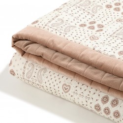 Kahepoolne tekk lasteaeda, mis sobib hästi ka tekiks või mõnusaks katteks lasteaia uinakuajal.  Teki üks pool on valmistatud kõrgeima kvaliteediga puuvillast ühes meie neljast mustrist ja teine ​​pool elegantsest Velvetist. Tekk on täidetud hüpoallergeense silikoonfliisiga, mis muudab selle ülikergeks, pakkudes samas lohutavat soojust.  Tekki saab sobitada sama disainiga padjaga, et luua unikaalne komplekt magamaminekuks või lastetuppa!