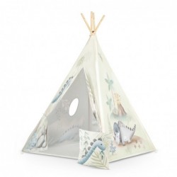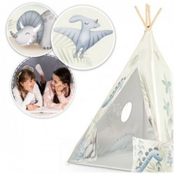 Ehitame ise oma baasi! Komplekt sisaldab: raam - 4 männipuidust posti, stabilisaator, disainer, spetsiaalselt kujundatud illustratsioonid, ümmargune aken, rihmad, sisseõmmeldud alus, paks dinosaurusemustriga padi. Lihtsalt üks kord kokku pane ja ongi valmis. Kokku- ja lahtivoltimine võtab vaid hetke. Kokkupanduna on telki lihtne kaasas kanda. Selle saab paigutada ühiskasutatavasse ruumi mänguväljakuna või aeda kõrvetava päikese eest kaitsmiseks.