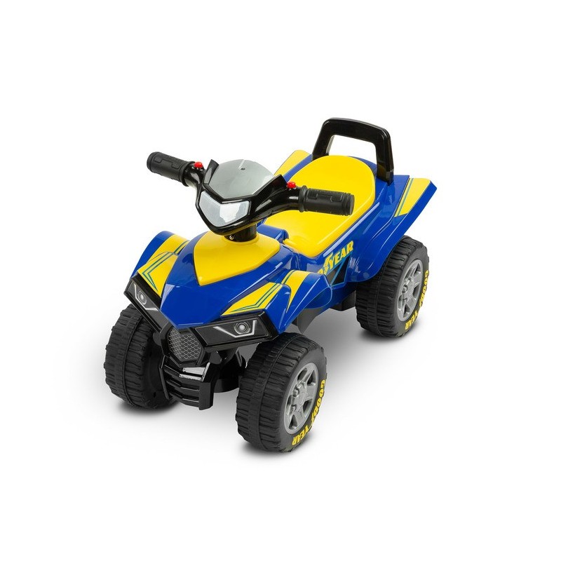 TOYZi Goodyeari neljarattaline mänguasi on mõeldud 1–3-aastastele lastele. Neljarattalise sõiduki kujuga mänguasi on varustatud rooliga, millel on nupud signaali andmiseks ja mootori käivitamiseks. Toode on valmistatud kvaliteetsetest materjalidest, mis tagavad selle vastupidavuse ja töökindluse. Mänguasja on lihtne puhastada ja hoiustada. Turvahällil on ümberkukkumiskaitse.