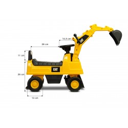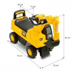 Toyz ekskavaatori tõukesõiduk on valmistatud CAT-litsentsi alusel. Signaaliga rool, liigutatav ekskavaatorikopp ja originaalsed värvid panevad selle pealissõiduki armuma kõigi rasketehnika fännide seas. Sõiduk on valmistatud kvaliteetsest plastikust. Istme all on lukustatav mänguasjade sahtel. Pealeistumissõidukil on kaitse ette- ja tahapoole kukkumise eest.