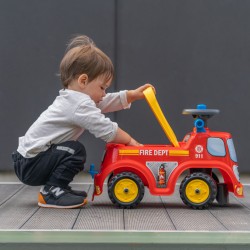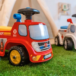 FALK Tuletõrjeauto Tuletõrjeauto on pealesõitev mänguasi, mis teie lapsele meeldib. Tänu sarvega roolile saab teie väikelaps oma motoorseid oskusi arendades hõlpsalt manööverdada. Sellel sõidutaval mänguasjal on praktiline panipaik istme all. Sellel on ka numbrimärk, et saaksite pealesõidule nime anda!