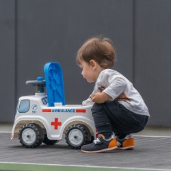 Kiirabiauto FALK on suurepärane sõiduk kõige noorematele päästjatele, 100% valmistatud Prantsusmaal. Mugava sarvega rooliga võimaldab see lastel koduste päästetööde ajal hõlpsasti manööverdada ja hoiatada selle saabumise eest. Tõstmise all on praktiline panipaik, kus väike arst saab hoida kõiki vajalikke meditsiinitarbeid. Täiendav atraktsioon on kaasas olev isikupärastatud numbrimärk , millele saate kirjutada oma väikese kangelase nime.