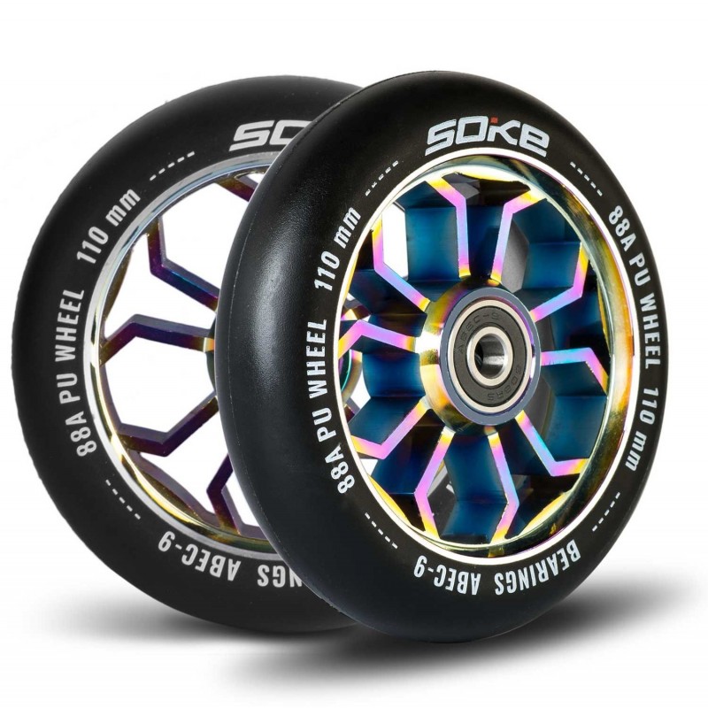 SOKE ratta komplekt tõukeratastele PÕHIOMADUSED: Kaubamärk: Soke Läbimõõt: 110 mm Telje läbimõõt: 8 mm Laagrid: ABEC 9 Kõvadus: 88A Materjal: alumiinium + PU Värvus: vikerkaaresinine SOKE rattad on valmistatud polüuretaansegust kõvadusega 88A ja neil on ühed kiireimad laagrid: ABEC 9. Need sobivad ideaalselt kõvadele pindadele, näiteks asfaldile. Sõdalase vaim SOKE on alati sinuga... S?KE (jaapani keeles) on Jaapani võitluskunstides kasutatav termin stiili looja või rajaja kirjeldamiseks. SOKE bränd loodi noorte tõukerattasõitjate toetamiseks alates esimeste trikkide õppimisest kuni kõige keerukamate evolutsioonideni. Nii sünnivad meistrid, nii sünnivad spordilegendid. SIIN JA PRAEGU Liitu SOKE sõdalastega, kes iga päev oma kunsti täiustavad.