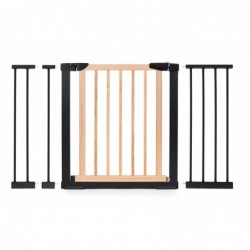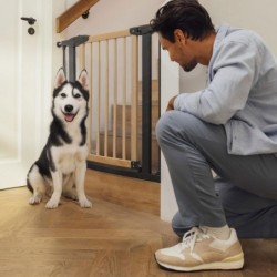 Ideaalne treppide ja sissepääsude kinnitamiseks, blokeerides tõhusalt laste ja lemmikloomade juurdepääsu. Reguleeritav laius alates 74 cm kuni 130 cm lisapaneelide ja survekruvidega. Tugev metallraam koos puidust tiibväravaga tagab vastupidavuse ja esteetilise välimuse. Värava saab kinnitada survega kruvide abil või püsivalt paigaldada kaasasolevate kinnituspatjade ja seinaankrutega. Suurema mugavuse huvides on väraval kahesuunaline avanemine automaatse sulgemismehhanismiga. Värava kõrgus on 78 cm, tagades kõrge turvalisuse taseme.