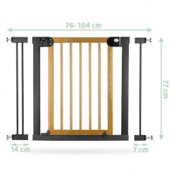 Nukido turvavärav kinnitatakse poltidega ilma auke puurimata. Sa ei kahjusta seinu ega uksepiita. Värav on valmistatud heleda puidu ja musta terase kombinatsioonist, seega sobib see sisekujunduse puidust elementidega. Reguleeritav laius võimaldab seda paigaldada ukseavadesse ja käikudesse laiusega 76–104 cm. Hoolitse oma lapse turvalisuse eest. Sinu laps õpib iga päev midagi uut, seega tasub osta turvapiire, et aidata tal maailma turvaliselt avastada. Värav hoiab ära teie lapse trepist ronimise või alla kukkumise. See ei luba siseneda valvamata ruumidesse. Kohanda vastavalt oma vajadustele Tänu laiendamisvõimalusele ja kinnitussüsteemile saab väravat reguleerida läbikäikudele laiusega 76 cm kuni 104 cm. Sa ei pea otsima eritellimusel valmistatud reelingut. Kasutage lihtsalt kaasasolevaid esemeid. Tööriistu pole vaja! Komplekti kuulub 4 kinnitusklambrit, mis aitavad teil värava hõlpsalt uksepiida või läbipääsu külge paigaldada. Sa ei pea muretsema ukseraami või seina kahjustamise pärast. Kui tõket enam vaja pole, saab selle hõlpsalt lahti võtta. Praktiline ja esteetiline lahendus Nukido turvavärava eelised: kinnitus tugipostiga sertifikaat: EN1930:2011 EN71 avamine ühe käega lihtne sulgemine reguleeritav laius (76-104 cm) kahepoolne avamine on blokeeritav avamine ainult ühes suunas võimalus blokeerida ust 90-kraadises asendis 4 kinnituspunkti topeltlukustus puidu ja terase kombinatsioon Spetsifikatsioon: kaubamärk: Nukido värav värvus: puit, must materjal metall, puit värava mõõtmed: 76-104cm x 77 cm komplektis: värav, 2 pikenduselementi, 4 laiuse regulaatorit, kaal: 6 kg sertifikaadid: EN 1930:2011 Kas värav on pärast karbist väljavõtmist veidi avatud? See on tahtlik tegevus, mis parandab selle stabiilsust näiteks uksepiidale paigaldamisel. Siis pead lihtsalt värava valgete mutritega reguleerima. Värav tuleb kokku ja toimib korralikult.