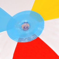 Oma värviliste triipudega tõmbab pall rannas paljude inimeste tähelepanu ja julgustab neid mänguga kaasa lööma. Kindlasti ei kaota seda ka teie kliendid, sest tänu värvilistele triipudele teavad nad juba eemalt, kus nende pall on.