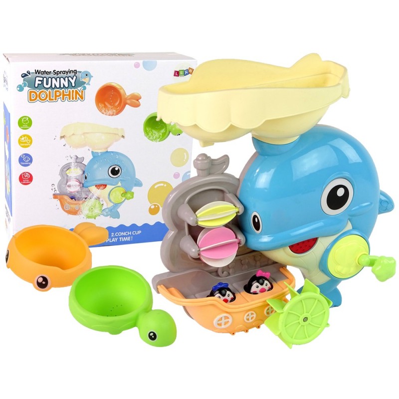 Suplusmänguasi Dolphin Waterfall Basching Dušš Meremaailm, kujundid ja värvid köidavad teie lapse tähelepanu ja julgustavad vanni minema. Rõõmsameelne delfiin on mõeldud mängimiseks vannis, basseinis või duši all. See julgustab teie väikelast vanni võtma ja tajub seda naudinguna. Suur delfiin loob veejoa mõjul imelise kose. Esmalt kühveldage vesi kilpkonna ja kalakujuliste kulpidega ning valage seejärel delfiini pea kohal olevasse anumasse. Veevoolu alla tekib imeline kosk, kuid selles peitub midagi enamat. Ülemine konteiner on jagatud kaheks sektoriks. Üks voolab rullidesse, luues kose, teises osas aga voolab vesi delfiini suhu. Väikelaeva tekile voolav veejuga paneb väikesed pingviinid liikuma, kui nad üles-alla hüppavad. See mänguasi viib teie väikese taevasse! Delfiinil on nupp, mis paneb saba liikuma. Mänguasja vanni või plaatide külge kinnitamiseks on kaasas iminapad. Kõik on valmistatud kõrgeima kvaliteediga materjalidest, mistõttu on see lastele ohutu. Komplekti elemendid: - kosega delfiin - kala ja kilpkonnaga kulp Mänguasja mõõdud: 30 cm x 30 cm x 11 cm Pakendi mõõdud: 32 cm x 31 cm x 12 cm Toode sobib üle 18 kuu vanustele lastele. Mänguasi vastab EN71 standardile. Supluskomplekti kuuluvad loomad on valmistatud sertifitseeritud plastmaterjalidest, mis on lastele kahjutud. Komplektil on CE sertifikaat.