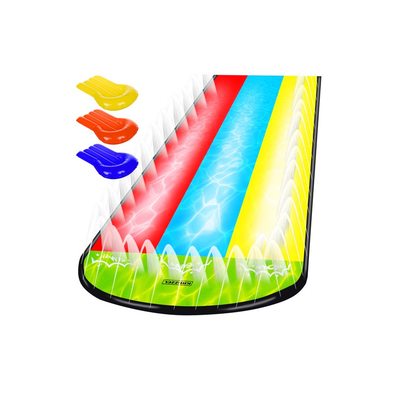 Kuumad suvi ja päikesepaistelised päevad julgustavad teid aias murul mängima. Nad võivad olla veelgi atraktiivsemad, kui pakuvad ühise võistluse kaudu täiendavaid emotsioone. Palavatel päevadel on mõnus end ka veega jahutada. Tervisliku võistluse, rõõmu ja kosutuse tagab kolmerajaline purskkaevuga veeliumägi. Seda kõike õues toimuva füüsilise tegevuse raames. Liumägi on valmistatud siledast ja painduvast materjalist, muutes selle kahjustustele vastupidavaks. See võimaldab teil seda kasutada ka erinevat tüüpi pehmetel pindadel.