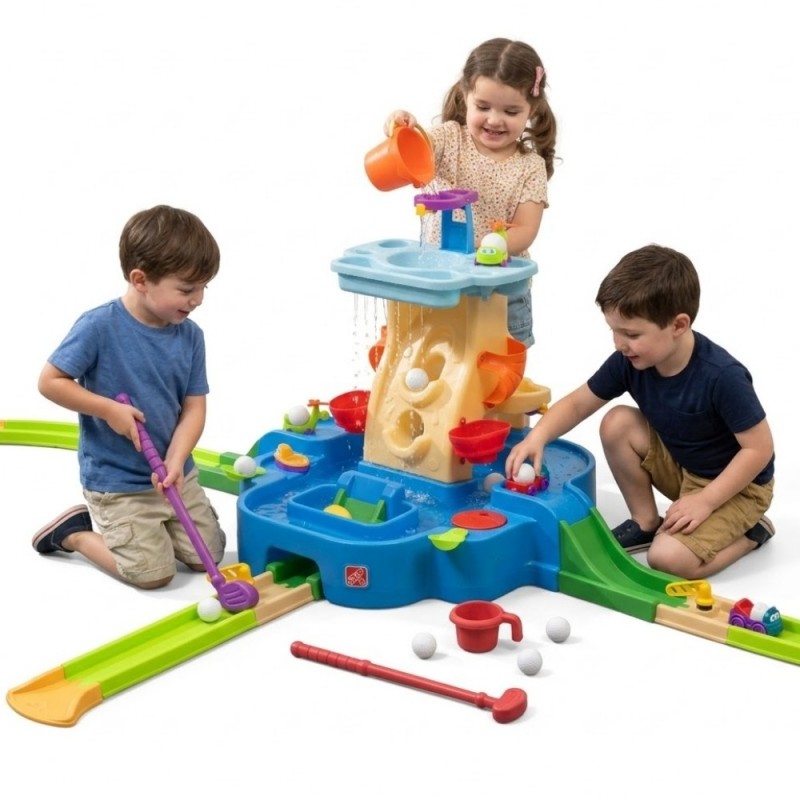 Lubage oma lapsele palju aktiivset tegevust 2. sammuga sisseehitatud minigolfirajaga veelauaga! See komplekt tagab päikesepaistelistel päevadel tundide kaupa lõbu, ergutades teie lapse füüsilist aktiivsust ning pakkudes tänu oma funktsionaalsusele ka lõõgastust. Lapsed saavad rajad vabalt laua külge ühendada, muutes iga kord nende paigutust. See tähendab, et uute marsruutide loomisel ei vanane lõbu kunagi. Nooremad lapsed harjutavad oma eesmärki, samas kui vanemad lapsed parandavad oma tehnikat, suurendades raskust. 360-kraadine avatud disain võimaldab mängida igast küljest, mistõttu on see ideaalne suurematele gruppidele.