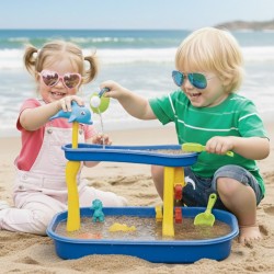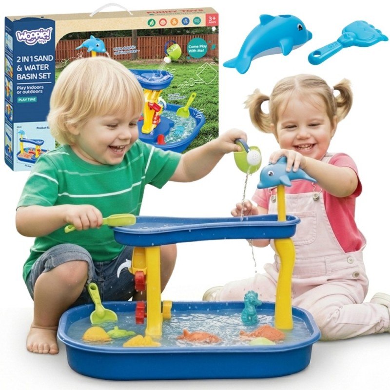 Looge oma aias või kodus lastele ainulaadne mänguala! See värvikas kaks-ühes veemänguasi ühendab endas rõõmu kala püüdmisest, vee vabastamisest ja selle voolamisest läbi lõbusate ehitiste, nagu vesiratas ja delfiinide liumägi. See komplekt pakub lastele tundide kaupa harivat lõbu, mis on täis liikumist ja naeru!