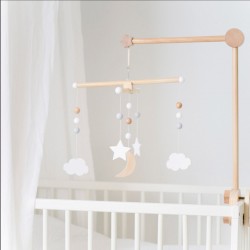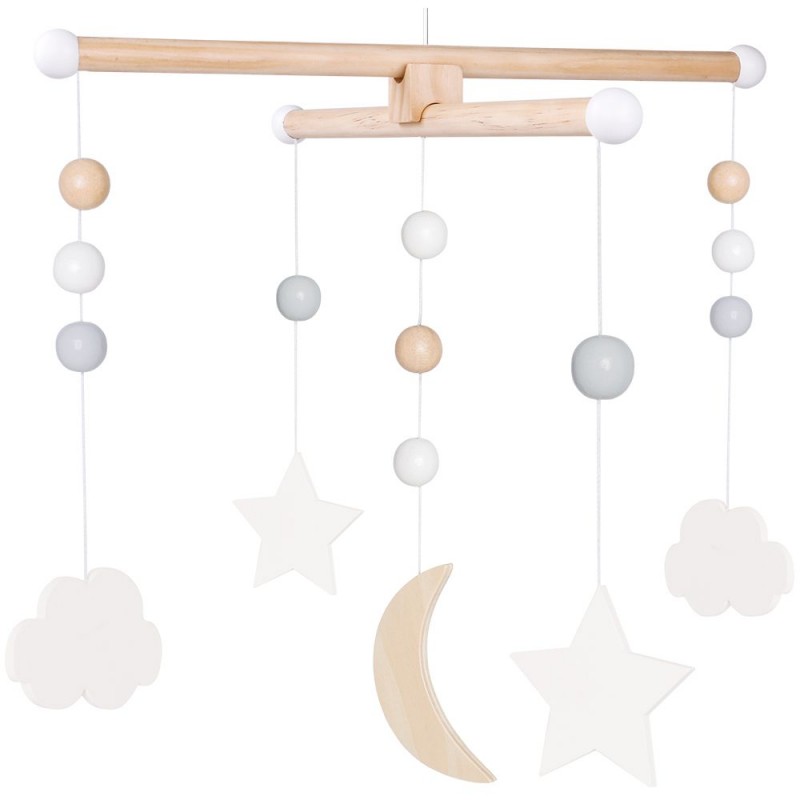 Armas puidust voodikarusell võrevoodi kohale riputamiseks või lastetoas mähkimislaua kohale. Karuselli värvid ja mustrid aitavad esimestel kuudel stimuleerida lapse meeli ja liikumist.