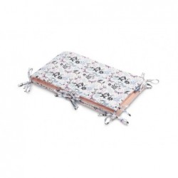Meie voodikate on alternatiiv paksudele ja rasketele voodikatetele, mida tavaliselt lastevoodites kasutatakse. Selle õiges asendis püsimise tagavad tihedalt õmmeldud paelad, millega voodikate kinnitatakse võrevoodipulkade külge. Õhuke kaerahelbedest polster kaitseb last vigastuste eest võrevoodis liikumise ajal ning on samal ajal ohutu ja minimeerib lapse lämbumisohtu. Üks külg on valmistatud pehmest ja meeldiva puudutusega siledast puuvillast ning teine külg on värvilise mustriga puuvillast. See on mõeldud võrevoodile mõõtmetega 120x60 cm.
