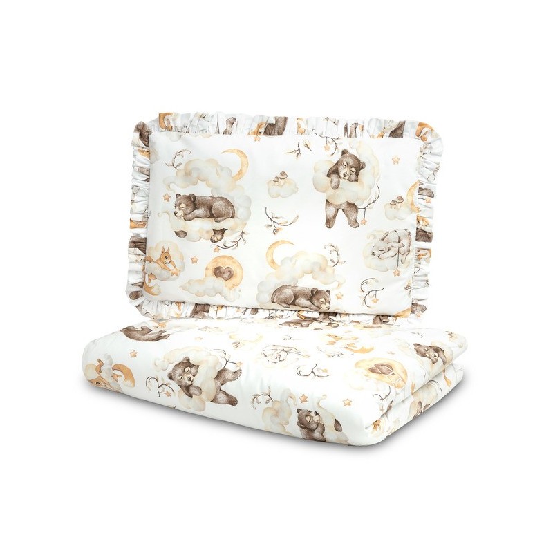 Kaheosaline volangidega voodipesu on valmistatud meeldivast puudutusele vastupidavast puuvillast. Värvikombinatsioonid sobivad ideaalselt igasse lastetuppa. Komplekti kuulub tekikott 100x135cm ja padjapüür 40x60cm. Tekikott kinnitub lukuga, padi on volditud.